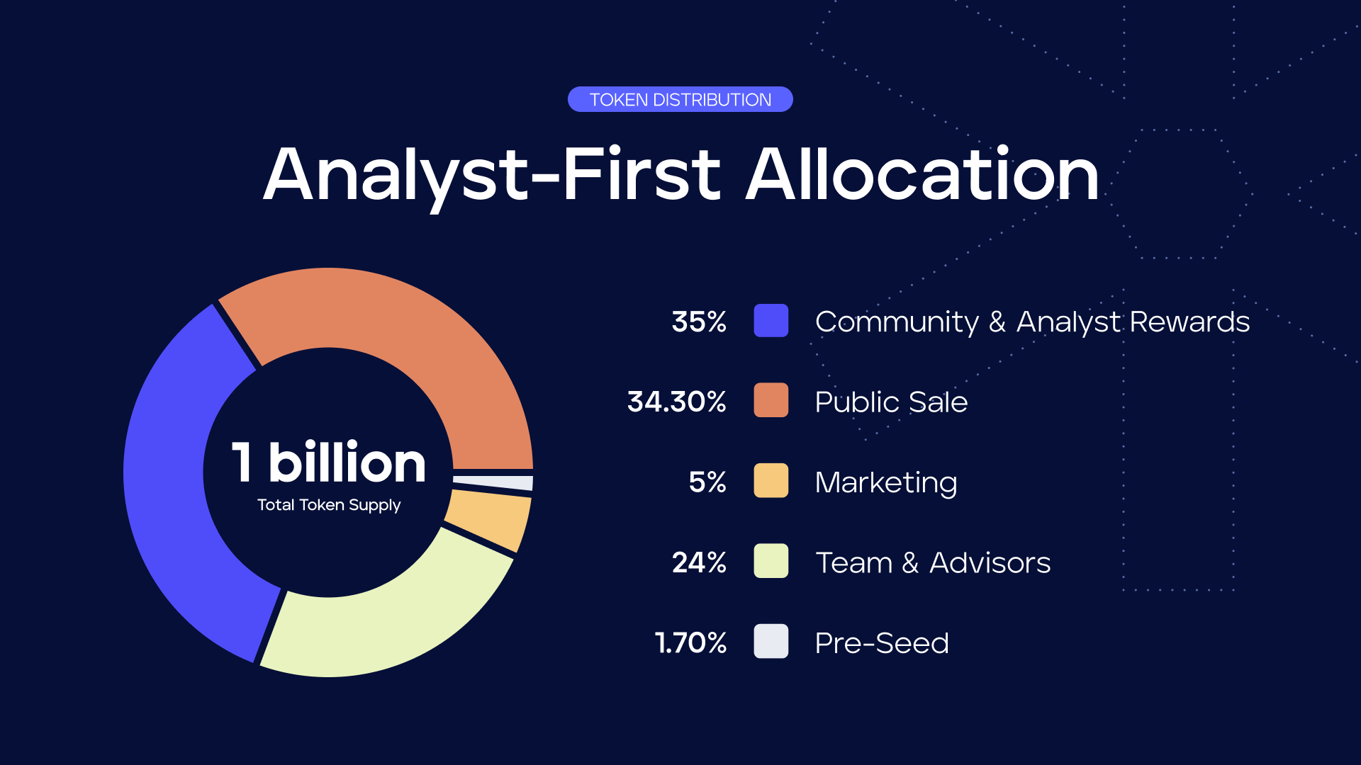 The largest allocation goes to the people creating value. Distributed over 36 months to analysts based on dashboard engagement, quality, and usefulness.